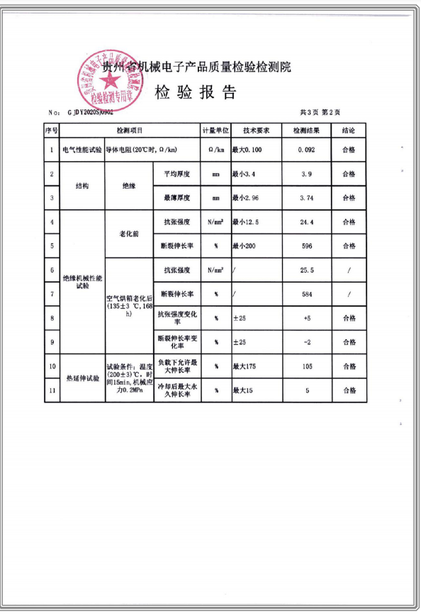 鋁芯交聯(lián)聚乙烯絕緣架空電纜 檢驗(yàn)報(bào)告