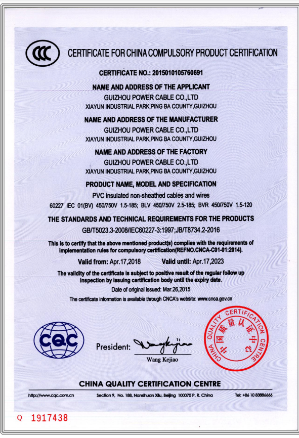 • CCC產(chǎn)品認證證書